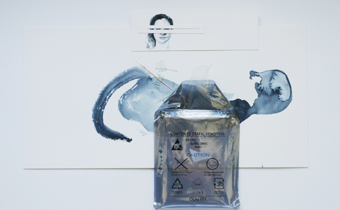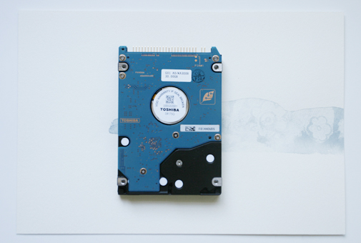 Aquarelle et disque dur externe, 2 pièces 50 x 35 cm